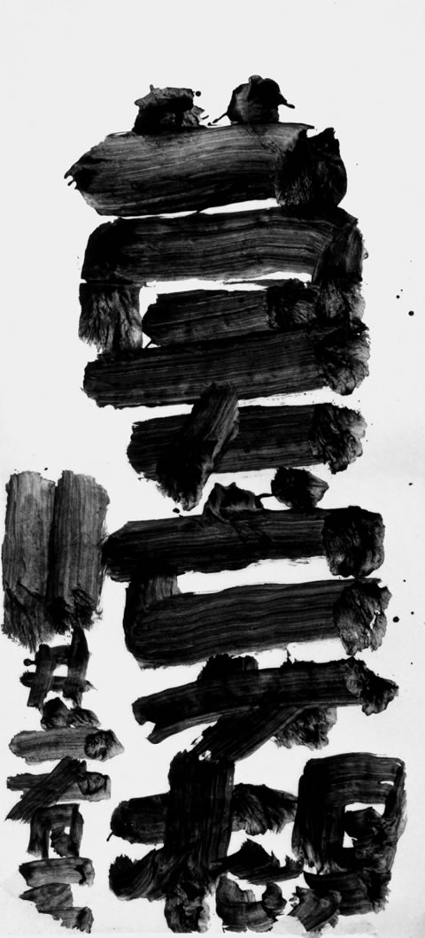 井上有一“剃著光頭,揮運巨筆,墨跡飛濺,摸爬滾打,旁若無人,無拘無束,放蕩不羈,一個野蠻十足的家伙!”卻是一位回歸筆墨文字,代表了20世紀后期日本的藝術家,是“以書為命”的藝術家,名垂世界藝術史冊的藝術家。