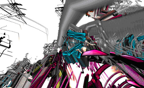 馮夢波的互動游戲作品《Q4U》曾建立了一個虛擬的城市空間,并結合《CS》里的攻打經(jīng)驗,伺機埋伏,對虛擬的敵人進行猛烈攻擊或者自己遭到血腥屠殺。而新作品《Q2008》延續(xù)了他以前一直用電子游戲做藝術的路線,但這次并不是建立而是拆除和剝離,他通過后臺程序把游戲中的城市、空間、背景全部取消,利用游戲程序中的一個接口來實現(xiàn)把一個時間序列同時呈現(xiàn)在屏幕上,空白的背景上人物動作也被壓縮在一個單幅畫面之內(nèi),像是一部二十一世紀的自動繪畫機器。