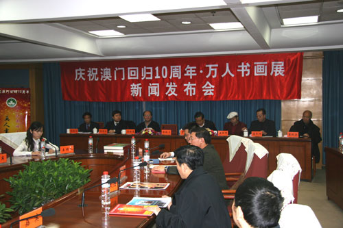 30日下午,“慶祝澳門(mén)回歸10周年•萬(wàn)人書(shū)畫(huà)展新聞發(fā)布會(huì)”在文化部召開(kāi),由此正式拉開(kāi)“中華民族大團(tuán)結(jié)萬(wàn)歲•萬(wàn)人書(shū)畫(huà)展——慶祝澳門(mén)回歸10周年”序幕。