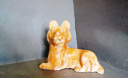 高浮雕獵犬 一件漢代灰陶井四周分別浮雕有龍、虎、熊、犬圖案,其中犬的浮雕通高13厘米,從其頭大面方、嘴短口闊、耳小下垂、四肢矯健、尾巴粗壯、毛發(fā)厚重等特征判斷,與藏獒十分相似。追溯藏獒的由來,第一次文獻記載出自旅行家馬可·波羅的游記。公元1275年,他在游記里描述道:“西藏人有如此大的犬只,如此兇猛,其形如藏驢,吠聲如獅?!睋?jù)說,馬士提夫犬、大丹犬、紐伯利頓犬、圣伯大犬、紐芬蘭犬等盛名于世的五大猛犬及德國的牧羊犬都含有藏獒犬血統(tǒng)。也就是說,藏獒是世界猛犬的祖先。若考古專家能研究證實此漢代陶井上的犬浮雕是藏獒,那這件漢陶井的史料價值和文物價值真不可估量了。