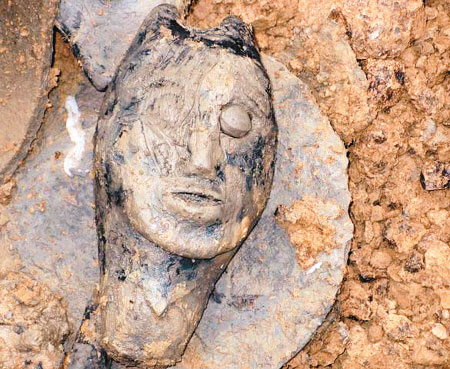 12月8日,該縣定軍山鎮(zhèn)肖寨村村民電話反映,在該鎮(zhèn)黃貓山下修路施工過程中發(fā)現(xiàn)一處古墓,縣文物部門工作人員立即趕赴現(xiàn)場(chǎng),對(duì)古墓進(jìn)行了隨工清理和搶救性保護(hù)。該古墓因機(jī)械施工,僅東側(cè)墓墻保存完整,幾何紋青磚排列整齊。清理中發(fā)現(xiàn)金銀首飾、銅盆、陶俑、陶豬、陶鴨、五銖錢等文物二十余件。其中,陶豬、陶鴨造型優(yōu)美、形態(tài)逼真;陶俑大者有真人三分之一大小,小者僅拳頭一半大小,陶俑雖大小不一、形態(tài)各異,但其眼珠、牙齒仍清晰可辨、活靈活現(xiàn)。一次出土多件陶俑,在該縣近年發(fā)現(xiàn)的古墓中實(shí)屬罕見。從本次出土的文物斷定,該墓葬為漢代古墓;從出土的銀釵、手鐲、侍女俑等陪葬品推測(cè),墓主人為大戶人家女性,但其確切身份有待進(jìn)一步研究確定。