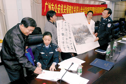 昨天,廣州市公安局刑警支隊會議室里,來自山東、北京、湖北、浙江等地的9名事主領回了自己被詐騙去的字畫和“會費”,深圳一名教授接過被騙的1.1萬元錢激動地連聲感謝刑警。警方介紹,疑犯黃×勇涉嫌詐騙137宗,涉及281名受害者,遍及23個省市。