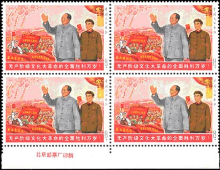 而這次香港INTERASIA的拍賣中,“大一片紅”同時亮相兩張,一新一舊(圖三);“全面勝利”這次推出的是帶廠銘新票四方聯(lián),是異常珍貴(圖四)的孤品,其它諸如“小一片紅”雙聯(lián)帶廠銘、小片紅實寄封等也都非常珍罕,極具收藏價值和升值空間。