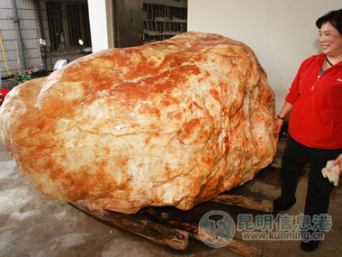 “這塊11噸重的石頭很有可能是云南最大的一塊黃龍玉原石,搞不好還是全國第一呢!”云南省收藏家協(xié)會副會長戴天飛說,近年來,黃龍玉的價格一直在穩(wěn)定增長。炒股炒房炒翡翠不過癮,不少炒家已經(jīng)開始將目光投入了黃龍玉上了!近幾個月,保山龍陵黃龍玉每天的成交額估計(jì)都在千萬元以上,不少銀行的取現(xiàn)額度都無法滿足買家的需求?!?009年年尾到現(xiàn)在,國內(nèi)的黃龍玉市場突然急速升溫,比如佛山、義烏等地區(qū)短短2個月的時間內(nèi),黃龍玉身價暴漲三成,目前成交均價每公斤近萬元?!贝魈祜w說,“越來越多的人開始關(guān)注云南的這個特有玉種了!”