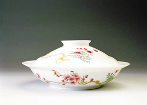 釉上水點(diǎn)桃花合盒器曾為毛主席專用