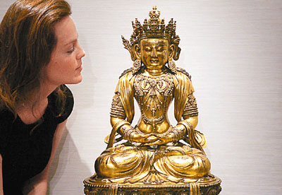 香港佳士得中國(guó)古代陶瓷及藝術(shù)品部副總裁曾志芬指出,該尊宣德年制鎏金銅無量壽佛坐像莊嚴(yán)無比,做工精妙,可說是明永樂、宣德兩朝宮廷制上乘鎏金銅像的代表作。