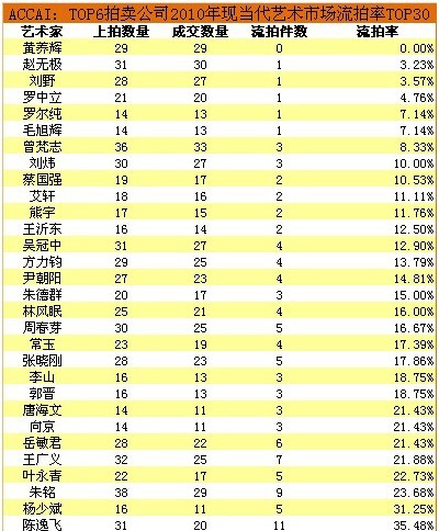 2010年現(xiàn)當(dāng)代藝術(shù)市場流拍率TOP30