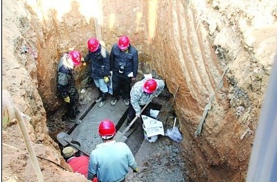 據(jù)了解,盧明恒家1962年從花果山大圣水庫(kù)搬至新村,2008年才在雞鳴山腳處蓋的新房。因?yàn)榈鼗虻臏\,當(dāng)時(shí)并沒(méi)有發(fā)現(xiàn)地下有什么異樣。“難道這是古墓?”盧先生立即停止了挖掘。盧先生首先向村委會(huì)干部報(bào)告自己挖井挖出墓穴這件事,村干部聽后十分重視,并報(bào)警對(duì)現(xiàn)場(chǎng)進(jìn)行了保護(hù)。