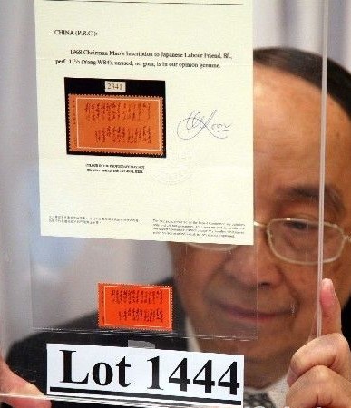 大會亦將拍賣逾600項內地珍貴郵品,估價高達1,532萬元,當中以獨一無二的1968年“毛主席給日本工人題詞”未發(fā)行郵票四方連最為矚目,這套四方連為文化大革命時期的罕有奇珍,由于日本政府以可能煽動國民情緒為由極力反對,因而取消發(fā)行,這是已知存世文化大革命連票稀品中最大型的一件,且屬世上僅知的唯一孤品,估價達600至800萬元。