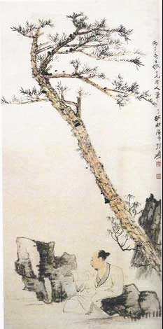 值得一提的是,一幅有爭議的畫作——張大千的《高士讀易圖》也出現(xiàn)在展覽中。這幅作品是張大千于1932年創(chuàng)作的,原圖為一高士坐在石頭上安詳?shù)刈x書,高士身后斜立著一棵松樹。米景揚(yáng)無意中購得此畫,但他一則認(rèn)為畫面構(gòu)圖單調(diào),二來上款被挖存明顯瑕疵。后來范曾在畫中添補(bǔ)了一位高士、一棵松樹。這種改變原作的做法至今在書畫界仍有爭議。
