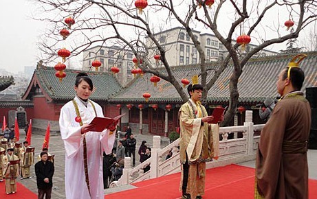 鄭州3月6日電 (邱迎)3月6日,在鄭州文廟舉行了中國成人禮儀式,在場的數(shù)百名學(xué)生和市民們共同重溫了古代的成人禮文化。