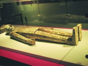 “金縷玉衣”是漢代規(guī)格最高的喪葬殮服,金絲串玉片,人形,今天出土一件那可是無價之寶;但是,有聰明絕頂?shù)睦习?,能夠請人制作出一件來,然后唬倒一大片?