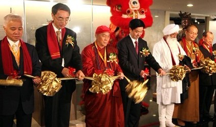大陸中華宗教文化交流協(xié)會副會長張樂斌、臺灣世界宗教博物館創(chuàng)辦人心道法師、北京首都博物館館長郭小凌等出席開幕式并剪彩參觀。(完)
