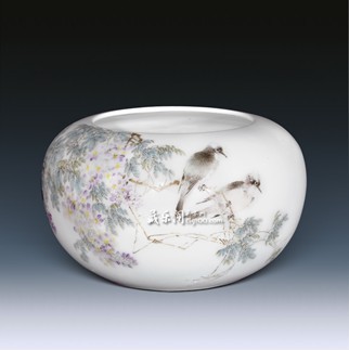 然而,淺絳彩瓷畫(huà)乃文人畫(huà)家初入瓷苑之階段,由于他們對(duì)陶瓷工藝的淺嘗輒止,瓷藝與畫(huà)藝的結(jié)合尚有不足。民國(guó)初年,淺絳彩已漸衰微,隨之而起的民國(guó)粉彩承接了淺絳彩藝術(shù)所創(chuàng)的先河,將中國(guó)畫(huà)韻致與粉彩工藝的結(jié)合推向了一個(gè)新的境界。早期名家潘匋宇、汪曉棠等人融畫(huà)理筆墨于工藝技巧之中,用筆靈活而工謹(jǐn),設(shè)色雅致而雋秀,瓷畫(huà)結(jié)合,別具懷抱。繼之而起的“珠山八友”結(jié)社圖新,在繼承粉彩傳統(tǒng)工藝的基礎(chǔ)上,力圖在瓷藝與畫(huà)藝上有所突破。雖然他們“翎毛山水梅兼竹,花卉魚(yú)蟲(chóng)獸與人。畫(huà)法惟宗南北派,作風(fēng)不讓東西鄰”,但創(chuàng)新宗旨是相同的,即以淺絳彩發(fā)展以來(lái)的中國(guó)畫(huà)藝術(shù)形式,力證傳統(tǒng)粉彩同樣具有在瓷上表現(xiàn)文人畫(huà)的藝術(shù)魅力。他們對(duì)粉彩工藝能駕馭自如,作品寫(xiě)人物之品貌,圖峰巒之氣勢(shì),描花草之秀美,題材內(nèi)容豐富,表現(xiàn)形式活潑,其中也以瓷板畫(huà)作品居多。這種張揚(yáng)藝術(shù)家主體意識(shí),強(qiáng)調(diào)個(gè)人藝術(shù)風(fēng)格的瓷畫(huà)藝術(shù)史景德鎮(zhèn)陶瓷發(fā)展過(guò)程中的重要變化,它融入了五千年傳統(tǒng)文化的精神,展現(xiàn)了瓷畫(huà)藝術(shù)的精湛魅力,體現(xiàn)了文以載道的文化品格,形成了獨(dú)具特色的藝術(shù)風(fēng)格?!爸樯桨擞选睂⑻沾晌娜水?huà)推進(jìn)到歷史的舞臺(tái),他們從中國(guó)文人畫(huà)中吸取豐富的養(yǎng)料以陶瓷為載體,以陶瓷獨(dú)特的繪畫(huà)魅力與中國(guó)文人畫(huà)藝術(shù)結(jié)合在一起,開(kāi)拓了陶瓷文人畫(huà)藝術(shù)之路。