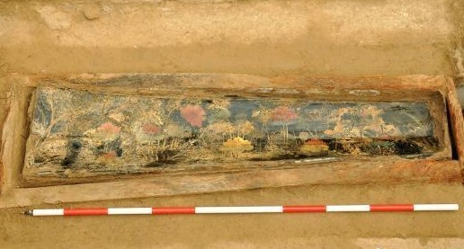 王望生說,目前已清理9座墓室,8具棺木中有3具彩棺,干燥的墓室及未遭盜掘是漆畫保存下來的重要條件。為避免這些漆面受溫度和濕度的影響而卷曲開裂,考古工作者將清理出的部分包上了塑料薄膜,以保持出土?xí)r的濕度。