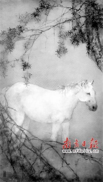 楊善深在各領(lǐng)域無(wú)一不精,以動(dòng)物畫最顯其個(gè)性。本次展出動(dòng)物畫的佳作,如《白馬》、《我最知魚》、《竹蜢》,物種涵蓋昆蟲、水族、家畜、禽鳥等,無(wú)一不惟肖惟妙,栩栩如生。楊善深擅畫動(dòng)物,這一點(diǎn)歸功于他長(zhǎng)年累月的觀察和寫生。據(jù)了解,為捕捉動(dòng)物的動(dòng)態(tài),楊善深常常四出各地,每見(jiàn)有神態(tài)活現(xiàn)的家禽或家畜,便駐足細(xì)觀,以速寫、默寫和攝影將其生動(dòng)瞬間記錄下來(lái)。近世畫壇多數(shù)畫家都只擅長(zhǎng)描繪一兩種動(dòng)物,而像楊善深這樣善畫各種門類動(dòng)物的畫家卻寥寥無(wú)幾。