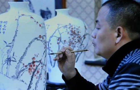 河北書畫家茶具上畫“造紙術(shù)” 展別樣瓷器藝術(shù)