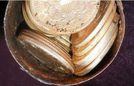 據(jù)報道,這對夫妻非常熟悉埋有金幣的小路,很多年來,他們幾乎每天都在這條小路上散步。有天在散步時,他們無意間發(fā)現(xiàn)一個老舊金屬罐子的邊緣露出地面?!叭缓?,我彎下腰,刮去上面的苔蘚,就發(fā)現(xiàn)了整個罐口,”這對夫妻說。他們一共挖到5個這樣的罐子。
