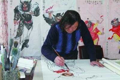 著名油畫《毛主席去安源》的作者劉春華很多人耳熟能詳,卻很少有人知道他有個(gè)弟弟叫劉根華。記者昨日采訪獲悉,劉根華是靈璧縣知名民間鐘馗畫畫師尹玉磷的唯一傳人,他打算近期開門授徒,把獨(dú)具特色的尹氏鐘馗畫法傳承下去。
