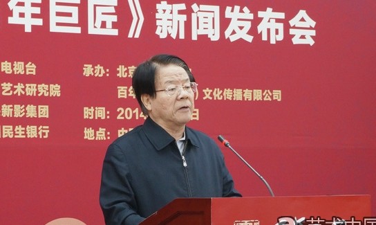 2014年3月28日,由中央電視臺、中國藝術(shù)研究院、中央新影集團、中國民生銀行共同主辦,銀谷藝術(shù)館、百年藝尊(北京)文化傳播有限公司承辦的“百集大型人物傳記紀錄片《百年巨匠》”新聞發(fā)布會在中國藝術(shù)研究院舉行。文化部部長蔡武,中宣部前副部長龔心瀚,中國藝術(shù)研究院院長王文章,中國文聯(lián)副主席、中國美術(shù)家協(xié)會主席劉大為,中央電視臺副臺長高峰等出席現(xiàn)場并致辭。