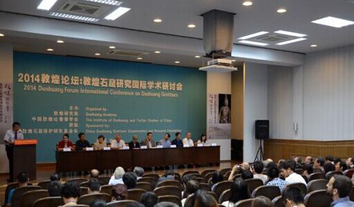 8月16日,“2014敦煌論壇:敦煌石窟研究國(guó)際學(xué)術(shù)研討會(huì)”在敦煌莫高窟啟幕。圖為參會(huì)的專(zhuān)家學(xué)者在莫高窟標(biāo)志性建筑“九層樓”前合影留念?!●T志軍 攝 8月16日,“2014敦煌論壇:敦煌石窟研究國(guó)際學(xué)術(shù)研討會(huì)”在敦煌莫高窟啟幕。圖為論壇開(kāi)幕現(xiàn)場(chǎng)?!●T志軍 攝 8月16日,“2014敦煌論壇:敦煌石窟研究國(guó)際學(xué)術(shù)研討會(huì)”在敦煌莫高窟啟幕。圖為敦煌研究院院長(zhǎng)樊錦詩(shī)作論壇致辭?!●T志軍 攝 中新網(wǎng)甘肅敦煌8月16日電 (記者 馮志軍 信江)由敦煌研究院、中國(guó)敦煌吐魯番學(xué)會(huì)主辦的“2014敦煌論壇:敦煌石窟研究國(guó)際學(xué)術(shù)研討會(huì)”16日在敦煌莫高窟開(kāi)幕。來(lái)自美國(guó)、德國(guó)、日本、韓國(guó)、英國(guó)、印度以及中國(guó)大陸、臺(tái)灣和香港地區(qū)的百余名專(zhuān)家、學(xué)者共同回顧與總結(jié)了敦煌研究院70年的歷史。