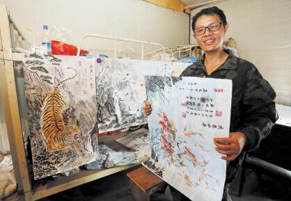 說起農(nóng)民工的業(yè)余生活,可能你馬上會聯(lián)想到打牌、看電視,甚或是在簡陋的排檔喝啤酒吃夜宵……不過,長沙河西銀盆嶺世茂大廈施工工地上,農(nóng)民工李盛明的業(yè)余愛好顯得有些“另類”:他愛畫國畫。經(jīng)過多年不輟的潑墨揮毫,他畫技日臻成熟,成了工友們口中小有名氣的“大畫家”,時常有人向他討“墨寶”。