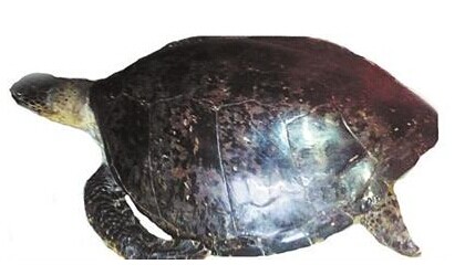 描述:長105cm,寬75cm,背甲呈黑褐色,腹部為白色。