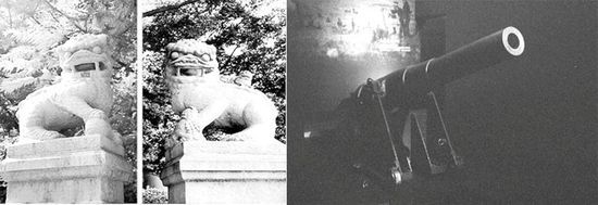 出了東京九段下地鐵口往前走,就是靖國(guó)神社的正門。正門實(shí)際上只有類似牌坊的“大鳥(niǎo)居”,兩側(cè)是日本稱作“狛犬”的神獸,而在“狛犬”的后面,便是一對(duì)石獅,雄左雌右,雄獅右爪玩一繡球,雌獅的爪下和背上各有一只玩耍的小獅,兩獅皆張著大口,極具動(dòng)感。日本史料記載,這一對(duì)石獅是在甲午戰(zhàn)爭(zhēng)時(shí),被日軍從遼寧海城的寺院里掠奪的。