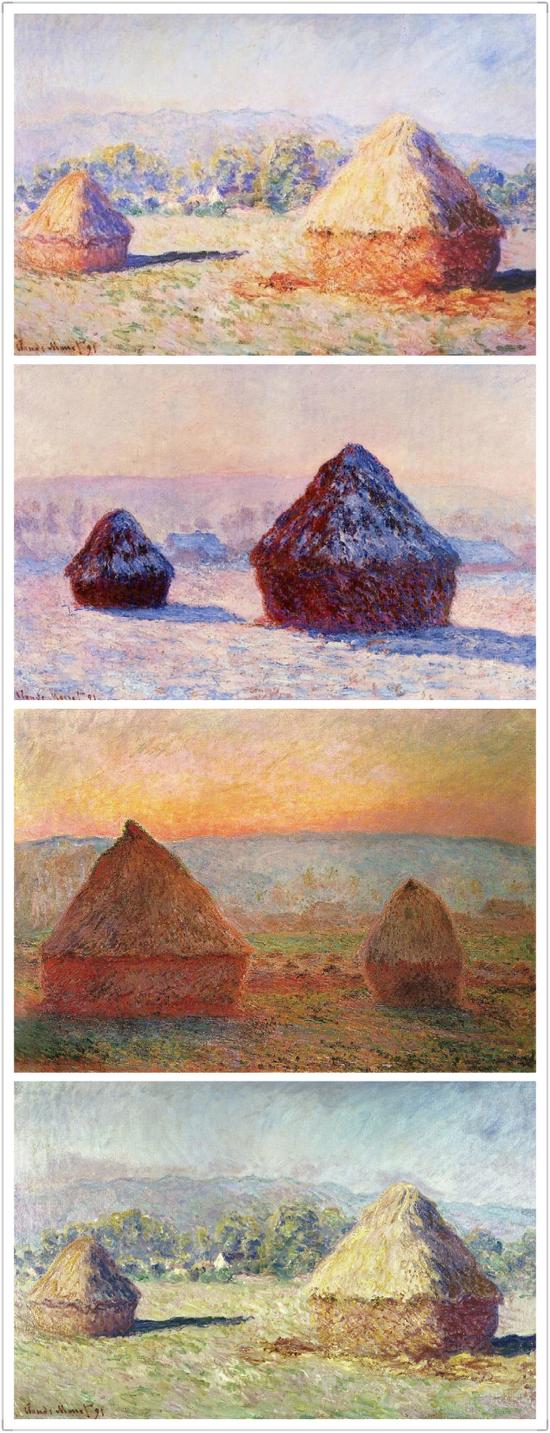 《干草堆》系列已知的畫作共有25幅,是莫奈1890年至1891年在巴黎近郊住所外的農(nóng)場(chǎng)創(chuàng)作。系列中的19幅目前由多個(gè)國(guó)家的博物館收藏,僅有極少數(shù)仍為私人所有。