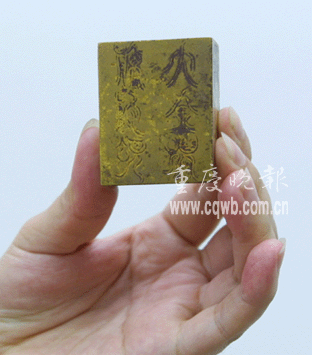 7月21日下午,大足縣高升鎮(zhèn)新光村村民石懷支在挖土?xí)r,從地里掏出一個(gè)四四方方的“金塊”,正面刻有古時(shí)皇帝頭像、背面刻有篆體字,生澀難辨。村民懷疑是從沒見過的“金錠”,很快向當(dāng)?shù)卣臀奈锊块T匯報(bào)。