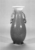 珍藏于中國(guó)工藝美術(shù)館的鈞瓷秀玉瓶,是鈞瓷的上乘精品,鈞瓷胎質(zhì)細(xì)膩堅(jiān)實(shí),造型渾厚端莊。以多色釉著稱,產(chǎn)于河南禹縣西南30公里的神后鎮(zhèn)。鈞瓷釉中常呈現(xiàn)珍珠點(diǎn)、魚(yú)子紋、兔絲紋等特有的沉紋。“窯變”更是鈞瓷的突出特點(diǎn),即是在它的燒成過(guò)程中,含有銅質(zhì)的釉經(jīng)過(guò)窯變,產(chǎn)生海棠紅、朱砂紅、雞血紅、葡萄紫、天藍(lán)、魚(yú)肚白等瑰麗的釉色,而且相互滲化,相映成輝。