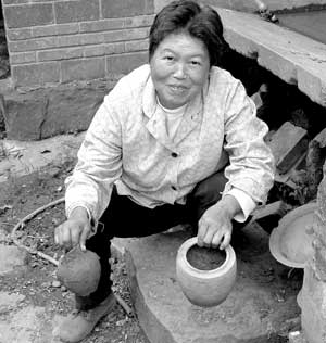 當(dāng)?shù)剞r(nóng)婦劉民國(guó)展示她在盜竊現(xiàn)場(chǎng)撿到的文物。