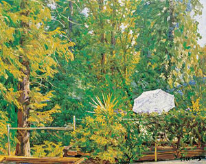 畫家對于生活和大自然充滿了熱愛與激情。他經(jīng)常深入生活,到自然中去觀察、體驗、寫生。他熱衷于現(xiàn)實的風(fēng)景寫生,以“擁抱”大自然為樂。他認為藝術(shù)作品的表現(xiàn)力和感染力均來自對大自然的切身的觀察感受,只有在寫生中畫家才能爆發(fā)出活的靈感,才能抓住自然界變幻無窮的色彩和極富生命力的筆法。畫家還認為,“油畫寫生永遠不能被彩色攝影所取代就在于繪畫飽含詩情畫意的藝術(shù)表現(xiàn)力要高于機械的感光取影。因為寫生必然要發(fā)揮作者的主觀能動性,有感觸,有重點的選擇與表現(xiàn)。因畫家的見識、興致的區(qū)別,個性、風(fēng)格也由此逐漸形成,并還會得到健康的發(fā)展。寫生與畫照片不同之處在于:前者是從現(xiàn)實的空間物象中自由擷采,可以提煉、概括物象與景觀的精華;后者則為平面的傳移摹寫,限制了觀察的深入和創(chuàng)造力的發(fā)揮,更難以獲得生動而微妙的色彩關(guān)系和筆法語言的張力?!?br/>