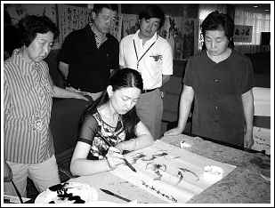 36歲的齊慧娟清雅秀麗,舉止間透出藝術世家特有的涵養(yǎng)和嫻靜。她說,爺爺78歲生了她的父親齊良末,爺爺親授技藝,父親很快就成了繪畫名家。她自幼對畫筆感興趣,3歲時就隨父學畫,后又師從齊白石的親傳弟子婁師白和齊佛來,年紀輕輕的她從事繪畫已33年,是個不折不扣的老畫家了。在齊家第三代傳承祖業(yè)的10多人中,只有她上了中央工藝美院,接受了專業(yè)系統(tǒng)訓練。