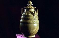 谷倉(cāng)作為明器中重要的一種形式,據(jù)說(shuō)一直延續(xù)到明代。盡管花樣翻新,但其功能大同小異。北宋?泉窯生產(chǎn)一種形制特別的蓋瓶,由于這種瓶的肩部通常安有五根管子,所以被稱為"五管瓶",也有不止五管的,也叫"多管瓶",但以五管的多見。這件五罐瓶就是出自龍泉窯的一件十分精美的器物。