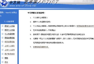 注:只有當(dāng)您注冊成為正式用戶后才能在藝術(shù)家主頁或中華藝才主頁看到您的相關(guān)信息,否則您只能在預(yù)入會員里面看
